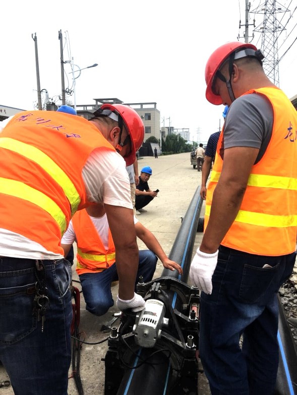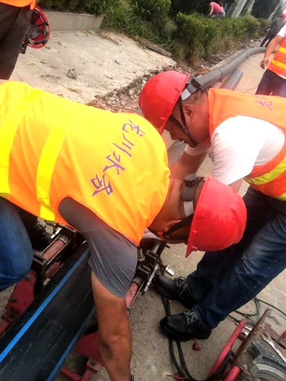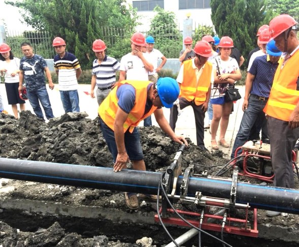 2018年9月6日上午,江都區(qū)武堅(jiān)鎮(zhèn)開發(fā)區(qū)DN200PE管道施工現(xiàn)場打破了往日的沉悶,一輛輛工程施工車輛整齊地停放在道路一側(cè),揚(yáng)州市惠民區(qū)域供水投資有限公司各鄉(xiāng)鎮(zhèn)供水所和測漏維修隊(duì)將在這里進(jìn)行PE管熔焊技術(shù)實(shí)踐演練活動(dòng)。
