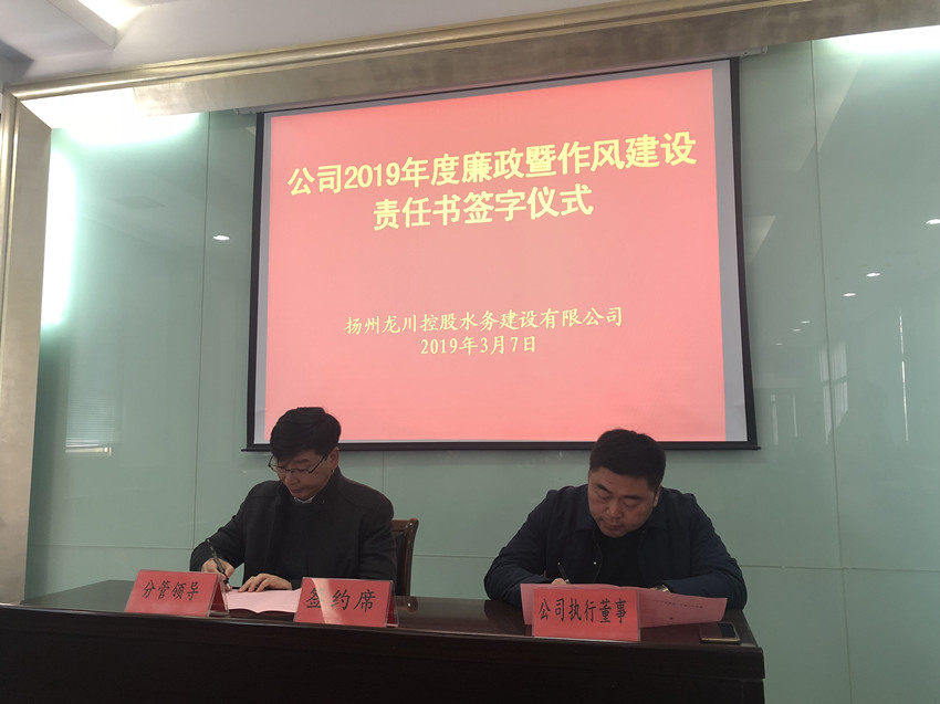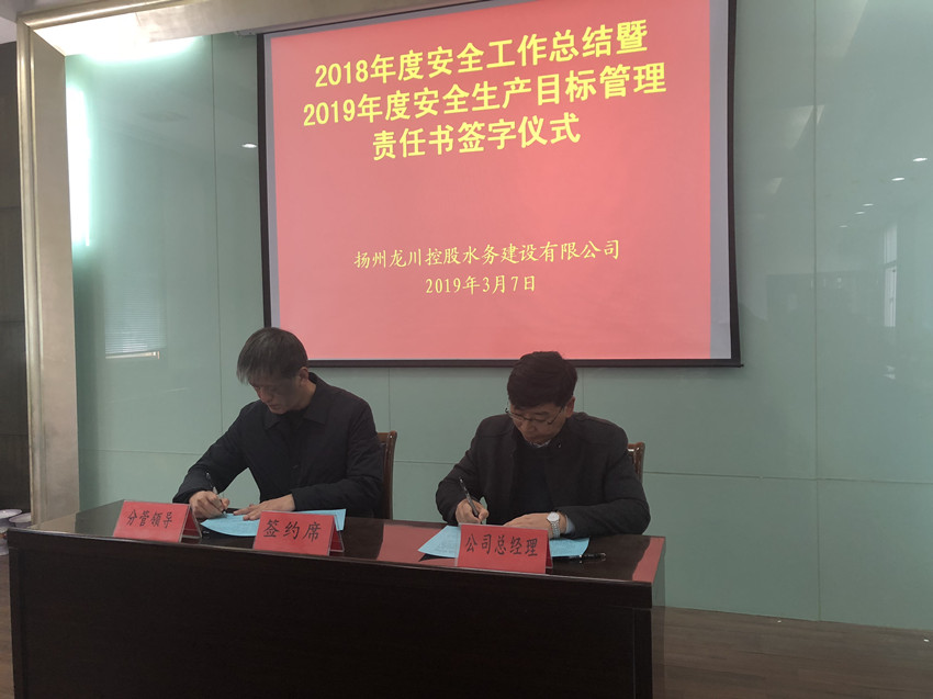 揚(yáng)州龍川水務(wù)公司舉行2019年度安全生產(chǎn)目標(biāo)管理責(zé)任書和廉政暨作風(fēng)建設(shè)責(zé)任書簽約儀式(圖文)