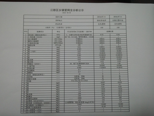 水質(zhì)公示
