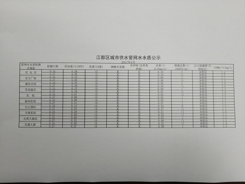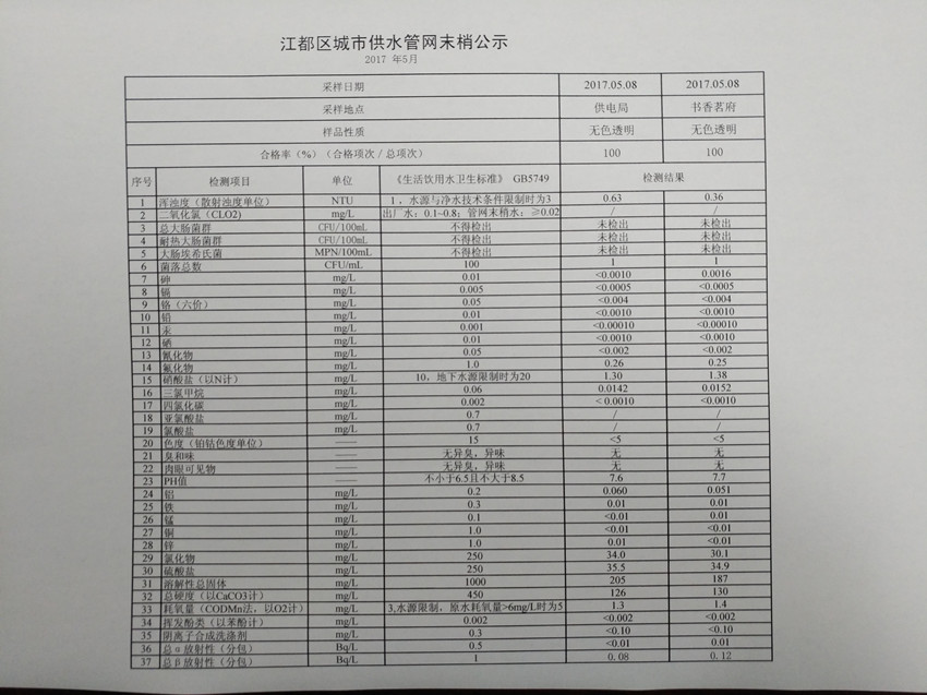 水質(zhì)公示