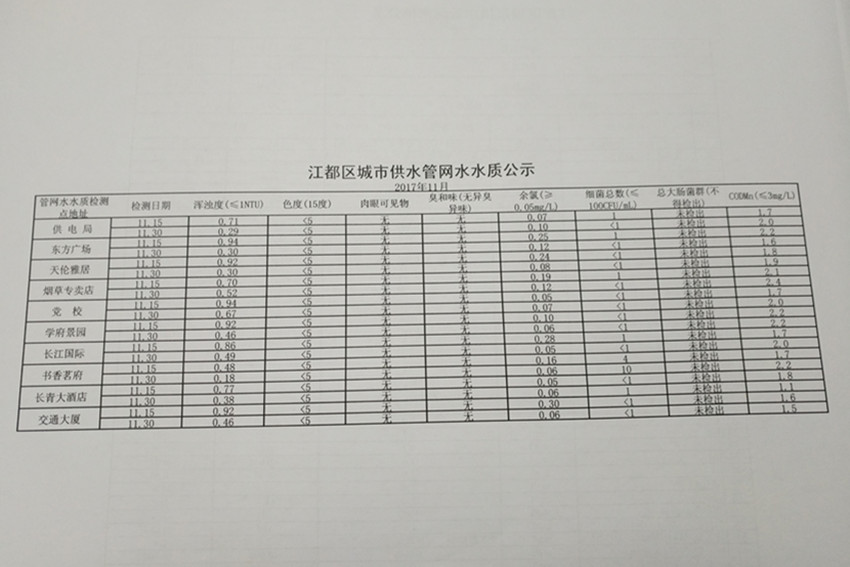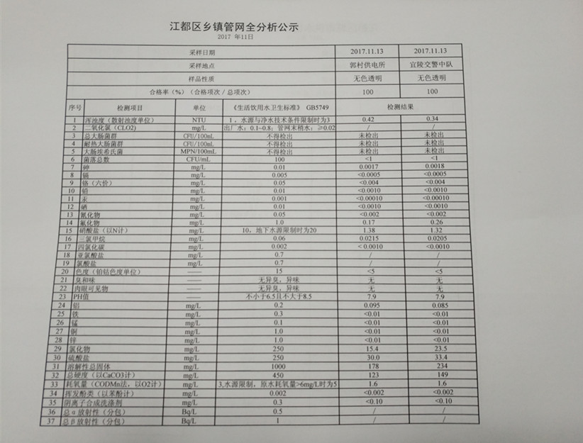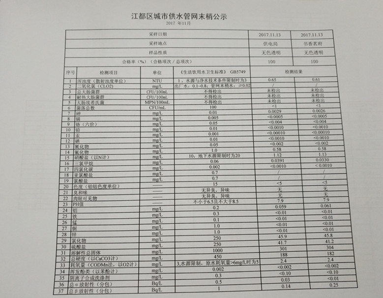 水質(zhì)公示
