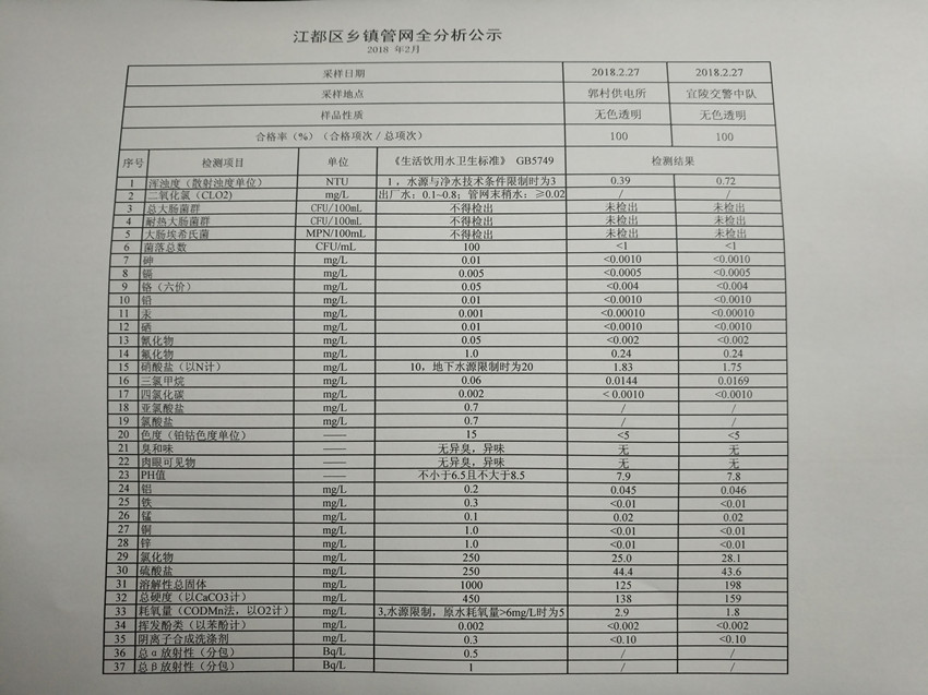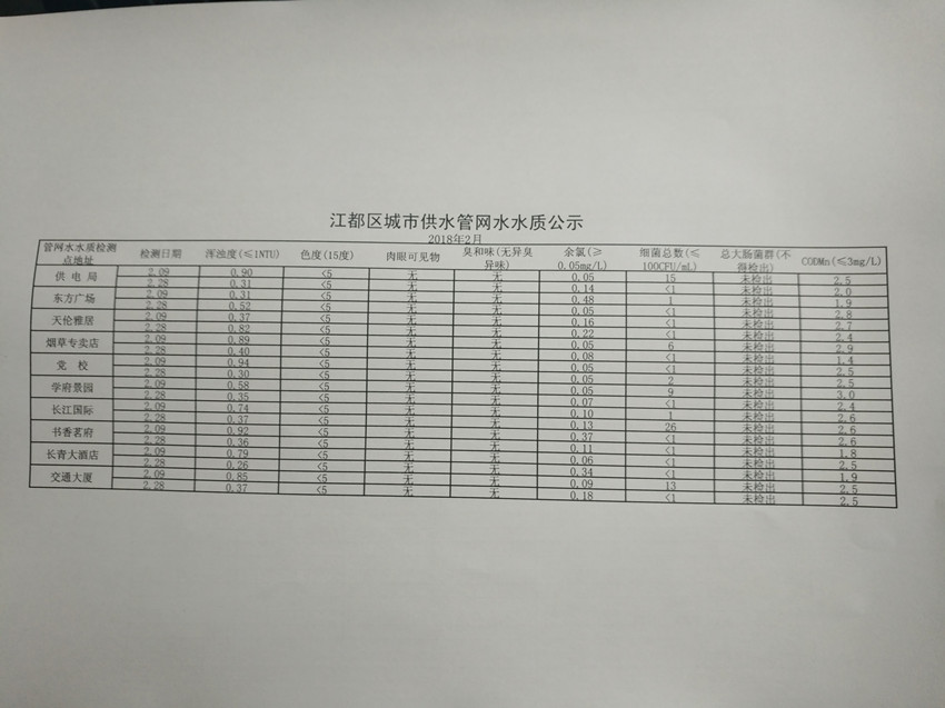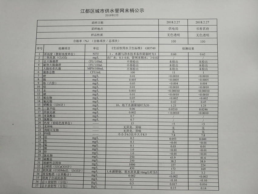 水質(zhì)公示