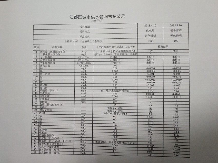 水質(zhì)公示