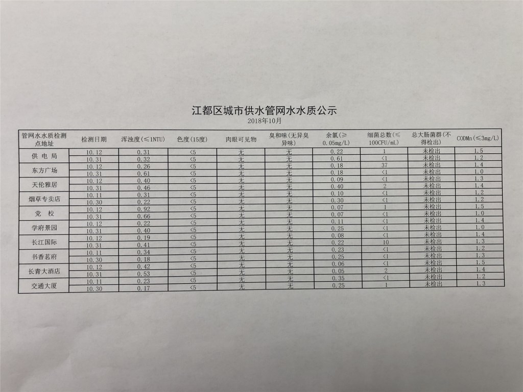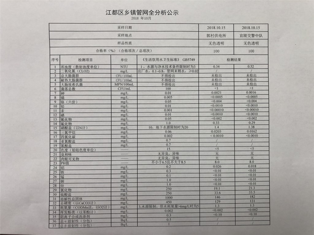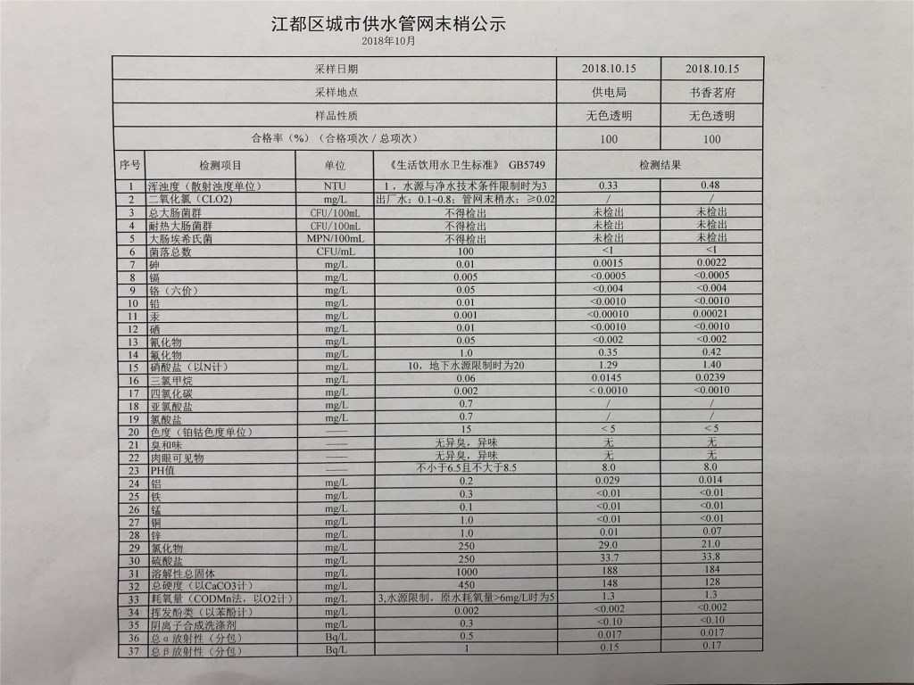 水質(zhì)公示