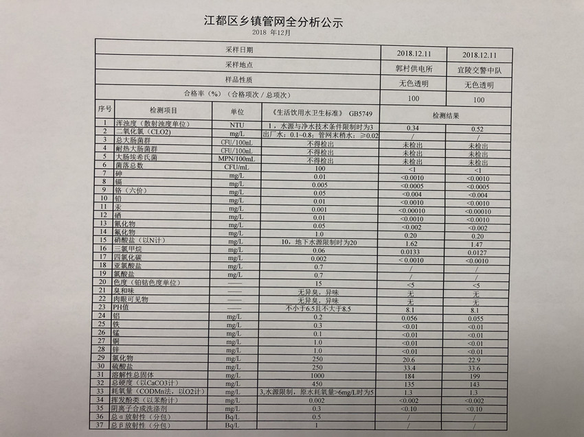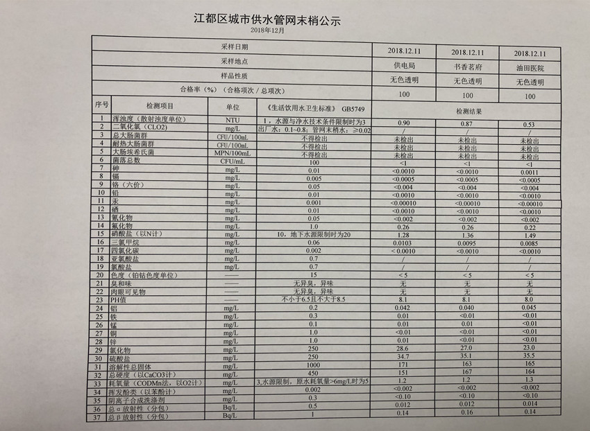 水質(zhì)公示
