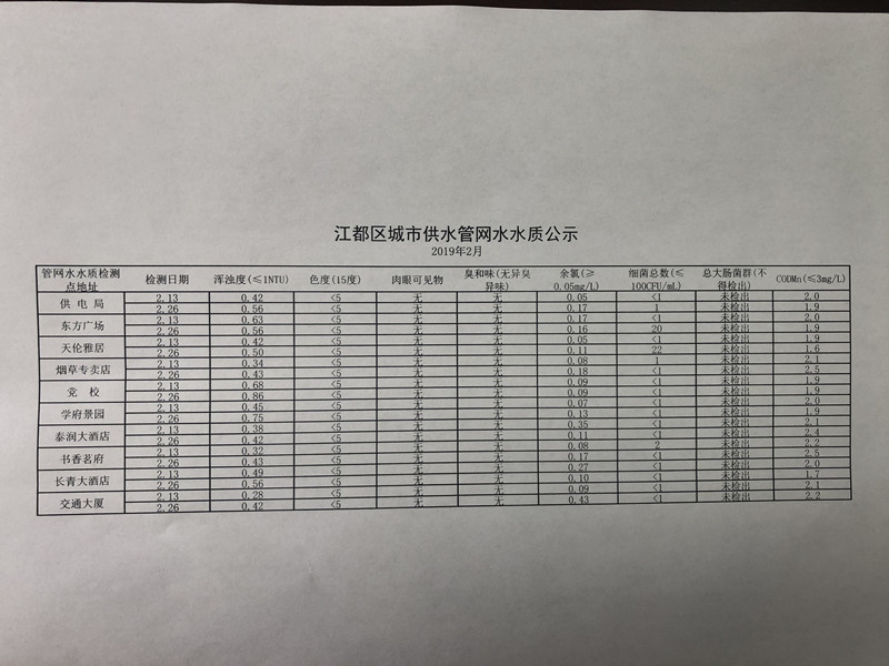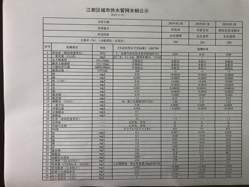 水質(zhì)公示