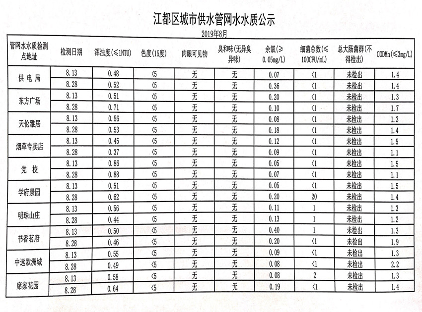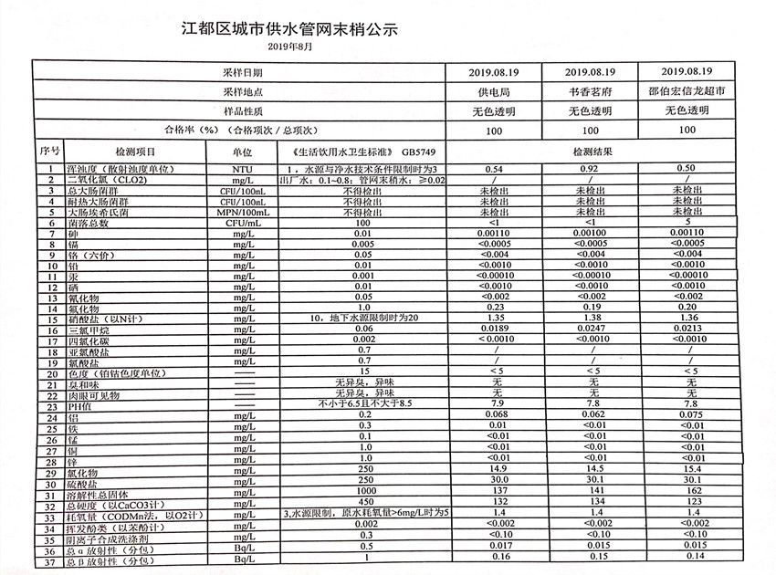 水質(zhì)公示