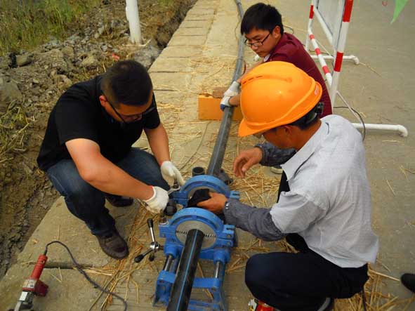 為保障區(qū)域供水有效運行,公司加大支管網(wǎng)和鄉(xiāng)鎮(zhèn)用戶水表出戶規(guī)范化改造力度,將“放心水”送到農戶家中。圖為工作人員在實施支管網(wǎng)改造。