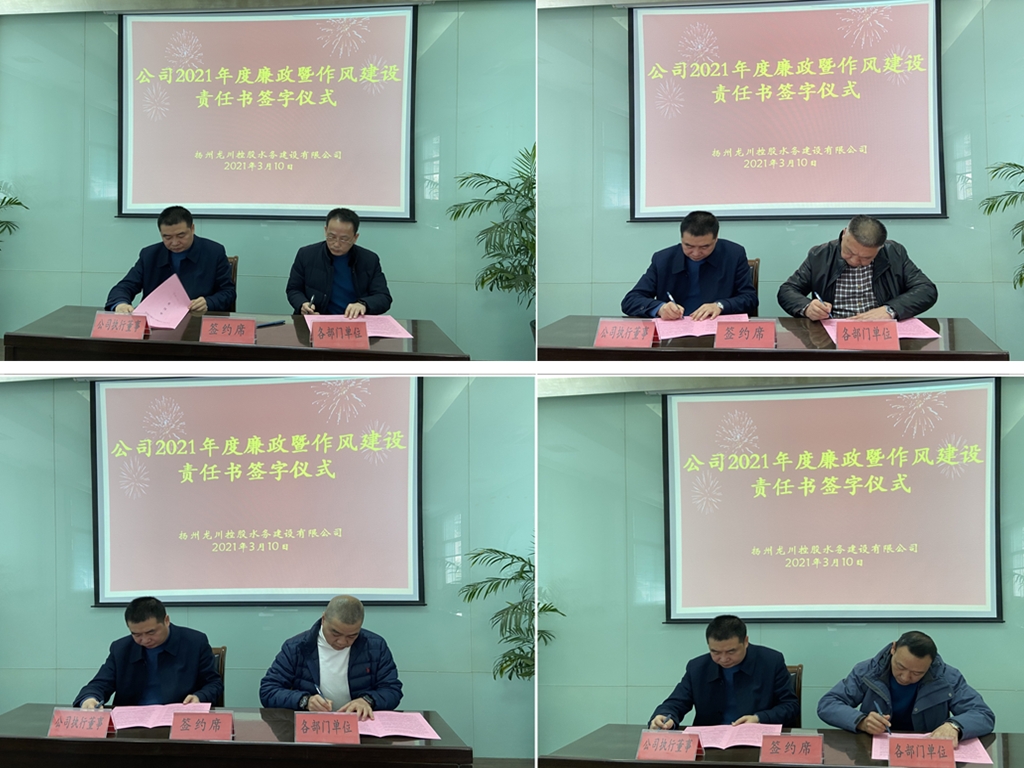 為進一步抓好龍川水務公司各部門、子公司的廉政暨作風建設,切實增強干部職工的廉政勤政意識。3月10日下午,公司在西二樓會議室舉行了2021年度廉政暨作風建設責任書簽訂儀式,儀式由公司黨總支副書記、副總經理石元忠同志主持。