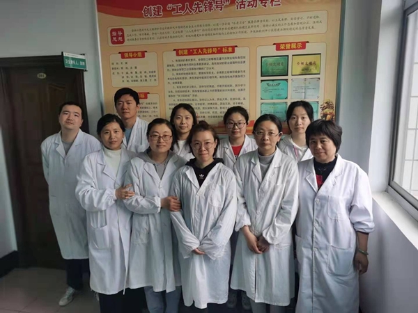 圖為環(huán)境檢測公司中心化驗室全體成員在創(chuàng)爭專欄前合影