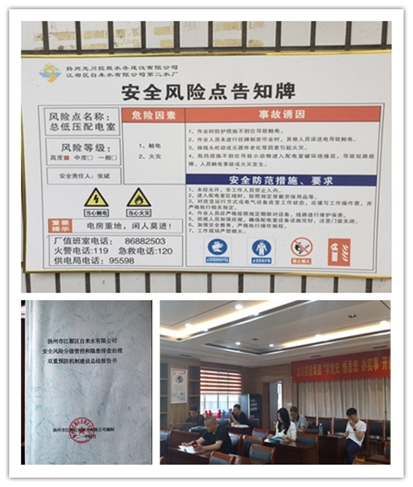 為積極響應(yīng)我區(qū)安全風(fēng)險(xiǎn)分級(jí)管控和隱患排查治理雙重預(yù)防機(jī)制建設(shè),充分發(fā)揮其防范和遏制事故發(fā)生的作用。江都區(qū)自來水公司全面貫徹“安全第一、預(yù)防為主、綜合治理”安全生產(chǎn)方針,開展了為期四個(gè)多月的“雙重預(yù)防機(jī)制”建設(shè)工作。