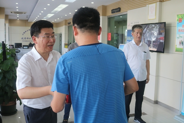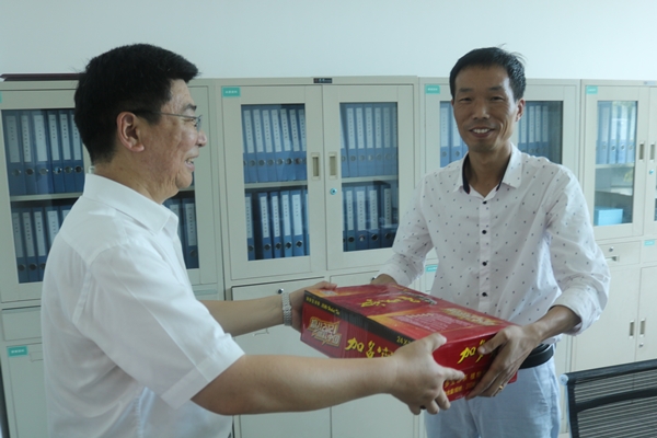 7月14日下午,在總經(jīng)理王智勇的帶領(lǐng)下,公司領(lǐng)導(dǎo)班子代表和相關(guān)職能部門帶著防暑降溫物品,先后深入供水生產(chǎn)、水質(zhì)化驗(yàn)檢測(cè)一線、管道施工現(xiàn)場(chǎng)和鄉(xiāng)鎮(zhèn)供水所、污水處理廠,集中進(jìn)行夏季高溫慰問活動(dòng),為默默揮灑汗水的一線工作者們送上清涼飲料等慰問品。王智勇總經(jīng)理每到一處都詳細(xì)詢問了他們的工作和生活情況,對(duì)大家不畏酷暑堅(jiān)守工作崗位的精神表示衷心的感謝,并叮囑他們?cè)诟邷靥鞖庀聞谧饕V厣眢w,既要戰(zhàn)高溫斗酷暑完成本職工作,也要確保身心健康,時(shí)刻注意高溫下的安全勞作。