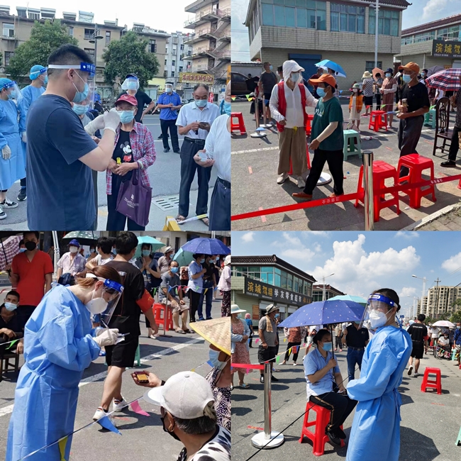 自7月31日接到上級龍川控股集團(tuán)關(guān)于疫情防控緊急工作部署的第一時間,龍川水務(wù)公司迅速行動,成立了一支疫情防控志愿小分隊,隨后根據(jù)相關(guān)形勢和要求,并幾經(jīng)公司相關(guān)動員部署和要求,該志愿服務(wù)隊不斷壯大,于8月中旬起已擴(kuò)編到110名。另據(jù)不完全統(tǒng)計,截至8月25日,龍川水務(wù)人先后奔赴丁溝鎮(zhèn)17個核酸檢測采樣點、仙女鎮(zhèn)樊莊社區(qū)無物管小區(qū)8個卡口服務(wù)點,共計完成六百余人次的志愿服務(wù)任務(wù),大家井然有序地在“核酸檢測”、“社區(qū)值班”兩種志愿服務(wù)模式中頻繁切換,履行國有企業(yè)員工應(yīng)盡的社會責(zé)任,為抗擊疫情貢獻(xiàn)自己的一份力量。