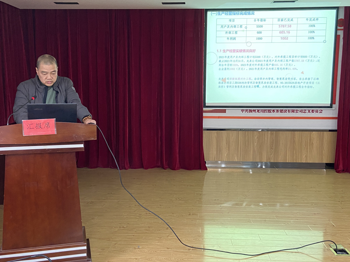 在本次大會匯報(bào)交流環(huán)節(jié),分別聽取了計(jì)劃財(cái)務(wù)部、運(yùn)營技術(shù)部、黨群工作部、自來水公司、惠民區(qū)域供水公司、龍泉建設(shè)工程公司、龍川污水處理公司等七個(gè)部門單位2021年工作總結(jié)報(bào)告。各部門、子公司負(fù)責(zé)人分別圍繞2021年全年生產(chǎn)經(jīng)營指標(biāo)、重點(diǎn)工作完成情況、存在的主要問題、解決對策以及2022年工作計(jì)劃作了交流匯報(bào)。
