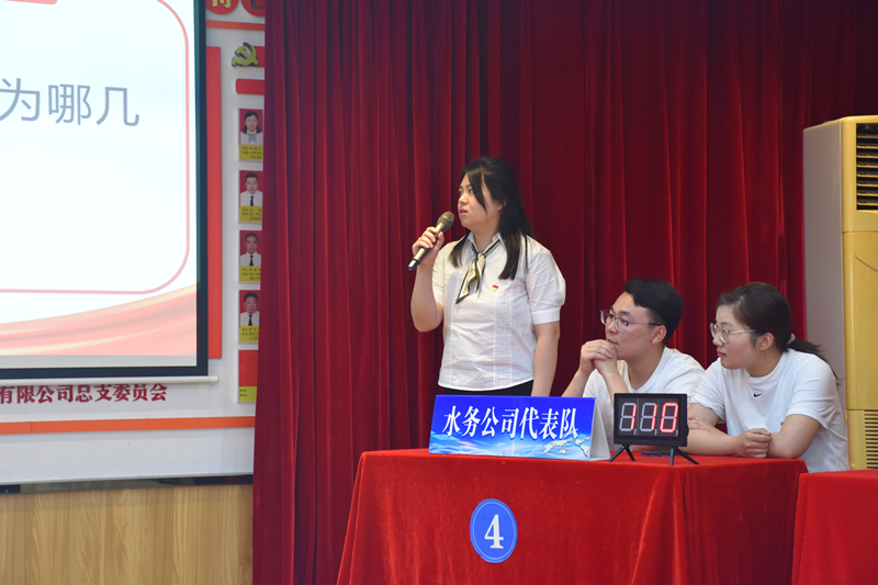 知識競賽開始前,由公司總經(jīng)理王智勇同志代表公司作活動致辭和領(lǐng)導(dǎo)講話,寄語龍川水務(wù)公司廣大青年員工在各自的崗位上發(fā)光發(fā)熱,成為公司再發(fā)展、再壯大的源泉和動力。同時希望大家努力做好以下三個方面:一是要堅(jiān)定理想信念,強(qiáng)化責(zé)任擔(dān)當(dāng);二是要堅(jiān)持勤奮學(xué)習(xí),不斷完善知識結(jié)構(gòu),提高業(yè)務(wù)素質(zhì);三是要干在實(shí)處,練就干事創(chuàng)業(yè)的本領(lǐng)。最后還倡導(dǎo)廣大水務(wù)青年要緊跟時代步伐,誠于做人,勤于做事,立足崗位,苦練本領(lǐng),用實(shí)踐行動為我們水務(wù)公司進(jìn)一步健康、和諧、可持續(xù)發(fā)展貢獻(xiàn)自己的青春力量!