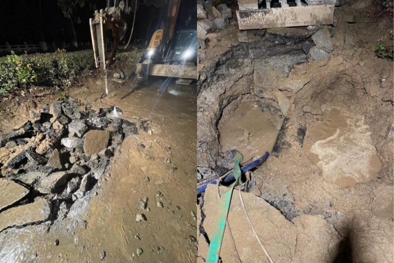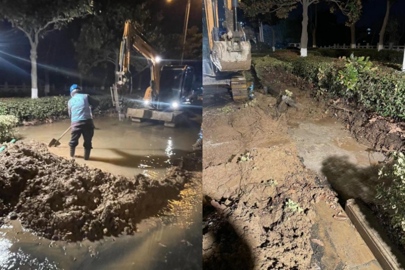 2023年1月25日,大年初四下午4點,當(dāng)大家還沉浸在新年的節(jié)日氛圍,在走親訪友時,在做待客的晚飯準(zhǔn)備時,龍泉公司接到群眾反映,江都橋北道路由于氣溫驟降的原因?qū)е翫N600主管發(fā)生爆裂,嚴(yán)重影響到附近居民供水安全以及道路安全,接到反映后,值守經(jīng)理韓春暉同志、項目部經(jīng)理夏陽華同志果斷部署,搶修班組迅速響應(yīng)、組隊,趕往現(xiàn)場。