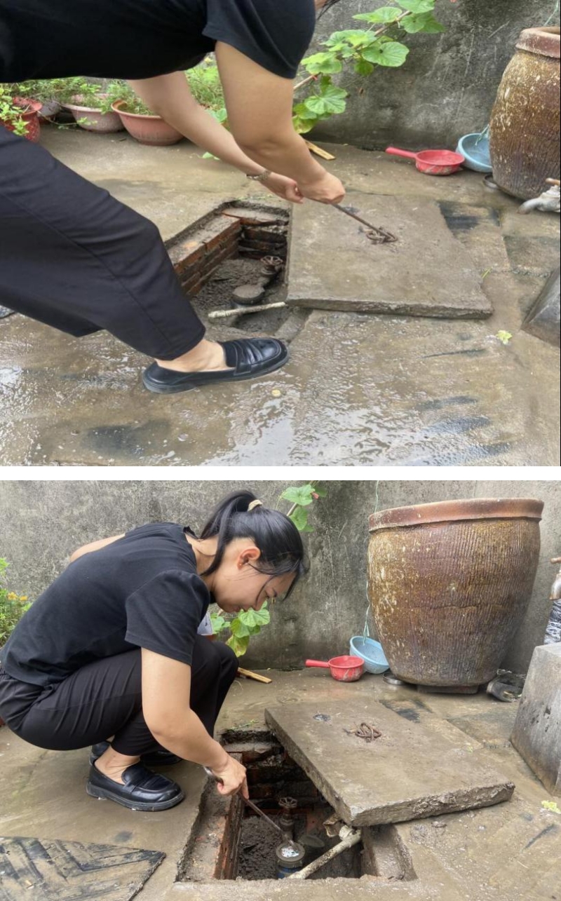 胡小娟是邵伯供水所成立初期就加入的“老員工”了,她負(fù)責(zé)的區(qū)域離鎮(zhèn)區(qū)較遠(yuǎn),要騎行半小時(shí)左右才能到達(dá)抄表區(qū)域,到達(dá)后停下車(chē)輛,拿起撬桿,將10多斤的厚水泥蓋撬起,雙腳跨入水表箱,將水表周邊泥土砂石清理完,表盤(pán)擦拭干凈后讀取數(shù)據(jù)、記錄數(shù)據(jù),天氣悶熱,不一會(huì),她的后背已經(jīng)濕透,擦了擦汗又前往下一個(gè)水表點(diǎn),重復(fù)著掀井蓋、清理表面、趴下看表讀數(shù)等這樣的“機(jī)械化”動(dòng)作。