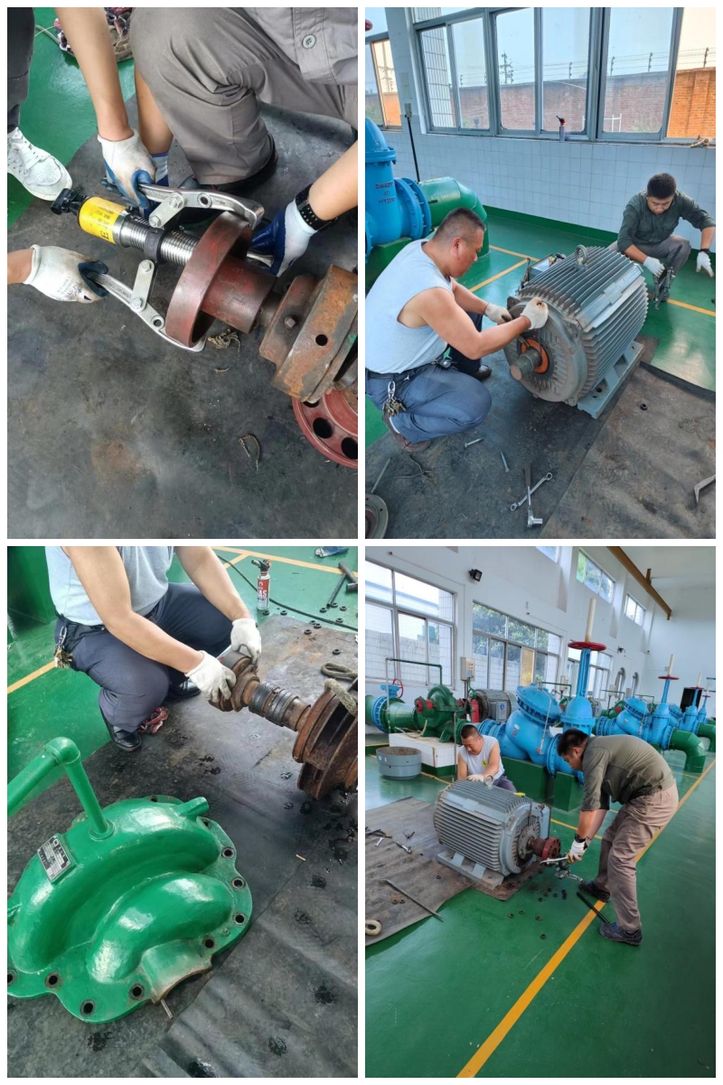 以上組圖為對送水泵房5#泵和電機進行保養(yǎng)和維護,更換軸套、軸承和電機軸承等