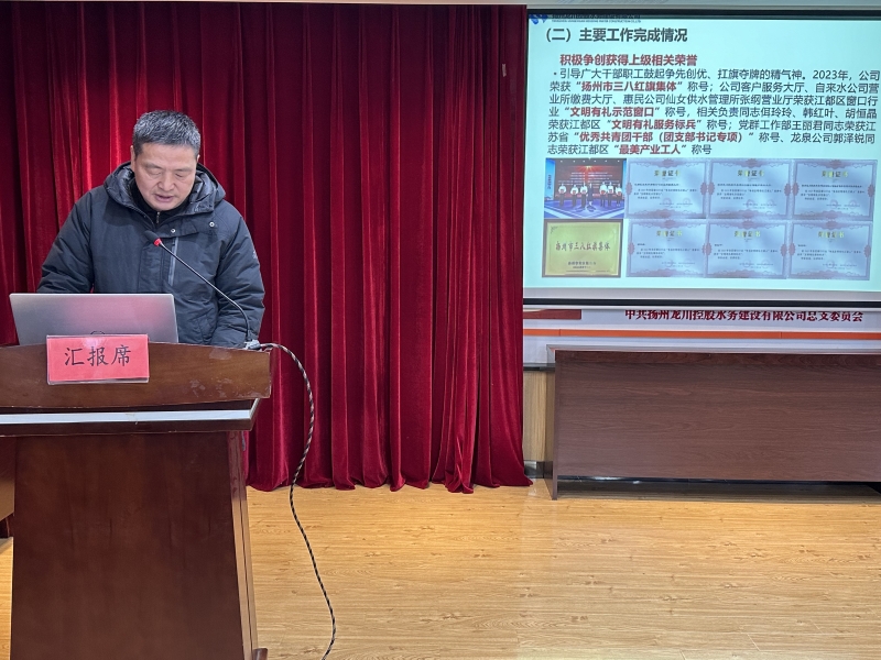 在本次大會匯報交流環(huán)節(jié),分別聽取了計劃財務(wù)部、運營技術(shù)部、自來水公司、惠民區(qū)域供水公司、龍泉建設(shè)工程公司、龍川污水處理公司等六個部門單位2023年工作總結(jié)報告。各部門、子公司負責(zé)人分別圍繞2023年全年生產(chǎn)經(jīng)營指標、重點工作完成情況、存在的主要問題、解決對策以及2024年工作計劃作了交流匯報。
