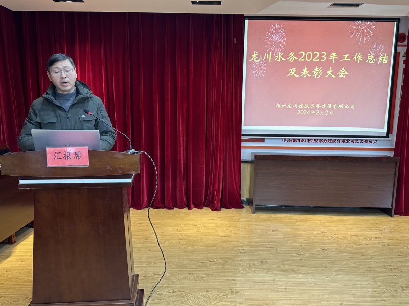 最后是本次大會的領(lǐng)導(dǎo)講話環(huán)節(jié),龍川控股集團副總兼水務(wù)公司董事長張勇同志作重要講話,在向2023年度所獲先進集體和個人表示祝賀和充分肯定水務(wù)公司過去一年所取得的成績的同時,主要就如何開展好2024年工作提出了四個方面的具體要求:一是要堅持效益優(yōu)先,把企業(yè)經(jīng)濟效益放在首位。二是要強化執(zhí)行力,積極拓展對外業(yè)務(wù)。三是要強化作風(fēng)建設(shè),廉潔自律。四是要加強人才梯隊建設(shè),激發(fā)員工干事創(chuàng)業(yè)的熱情。同時寄語廣大干部職工在新的一年里要以更加寬廣的視野、更加有力的行動,干在實處,走在前列,同心協(xié)作,聚力攻堅,為實現(xiàn)水務(wù)公司的新跨越、新發(fā)展做出更大的貢獻。