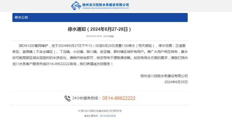 揚(yáng)州龍泉建設(shè)工程有限公司在通過現(xiàn)場(chǎng)實(shí)際查勘的基礎(chǔ)上,成立了專項(xiàng)施工隊(duì)伍,編制專項(xiàng)施工方案。與建設(shè)單位管網(wǎng)辦及揚(yáng)州長(zhǎng)江水務(wù)有限公司主管部門積極對(duì)接,了解管道施工碰接上下游主管道控制閥門,中途排污閥門及壓力表設(shè)備裝置,通過召開停水施工會(huì)議,確定了具體停水施工日期,由建設(shè)單位管網(wǎng)辦于會(huì)議48小時(shí)后在網(wǎng)上發(fā)布停水通知。