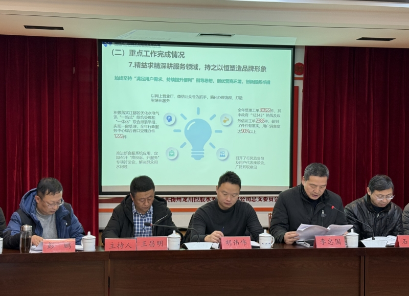 最后是本次大會(huì)的領(lǐng)導(dǎo)講話環(huán)節(jié),龍川控股集團(tuán)副總兼水務(wù)公司董事長(zhǎng)胡偉偉同志作重要講話,在向2024年度所獲先進(jìn)集體和個(gè)人表示祝賀和充分肯定水務(wù)公司過去一年所取得的成績(jī)的同時(shí),主要就如何開展好2025年工作提出了三個(gè)方面的具體要求:一是要保持“跳起來摘桃子”的拼勁。要把思想的發(fā)條擰得更緊、工作舉措謀劃得更實(shí)。二是要保持“挺直身敢擔(dān)當(dāng)”的闖勁。不斷增強(qiáng)企業(yè)實(shí)力、強(qiáng)健發(fā)展后勁,推動(dòng)水務(wù)公司跨越式新發(fā)展。三是要保持“沉下心抓落實(shí)”的韌勁。緊盯年度目標(biāo),聚焦工作重點(diǎn)、難點(diǎn),聚力供排水安全穩(wěn)定、提升對(duì)外服務(wù)滿意度,確保高質(zhì)量完成年度任務(wù)。同時(shí)號(hào)召全體水務(wù)員工以更加寬廣的視野、更加有力的行動(dòng),干在實(shí)處,走在前列,同心協(xié)作,聚力攻堅(jiān),為實(shí)現(xiàn)水務(wù)公司的新跨越、新發(fā)展做出更大的貢獻(xiàn)!